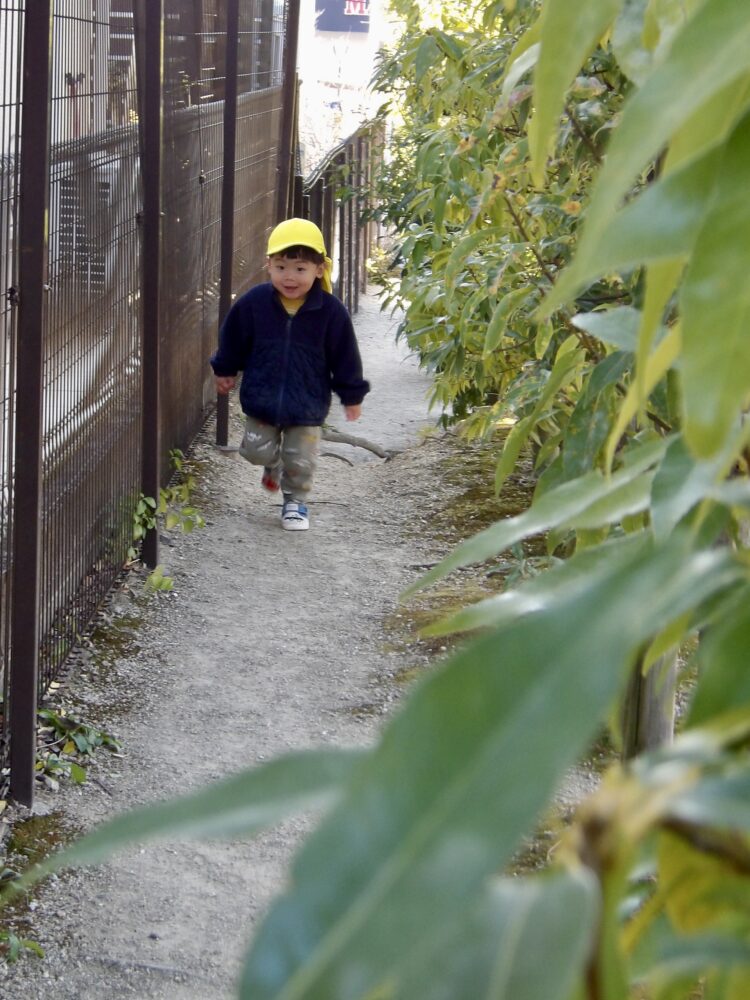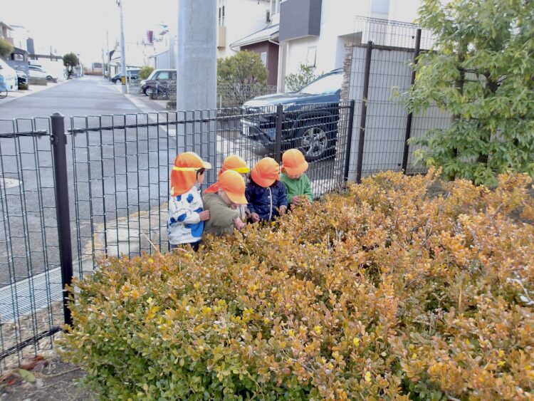 あちこちに友だちと散策していましたよ。植え込みの隙間や木の陰など、小さなスペースに連なる子どもたちがとても可愛らしいですね🥰