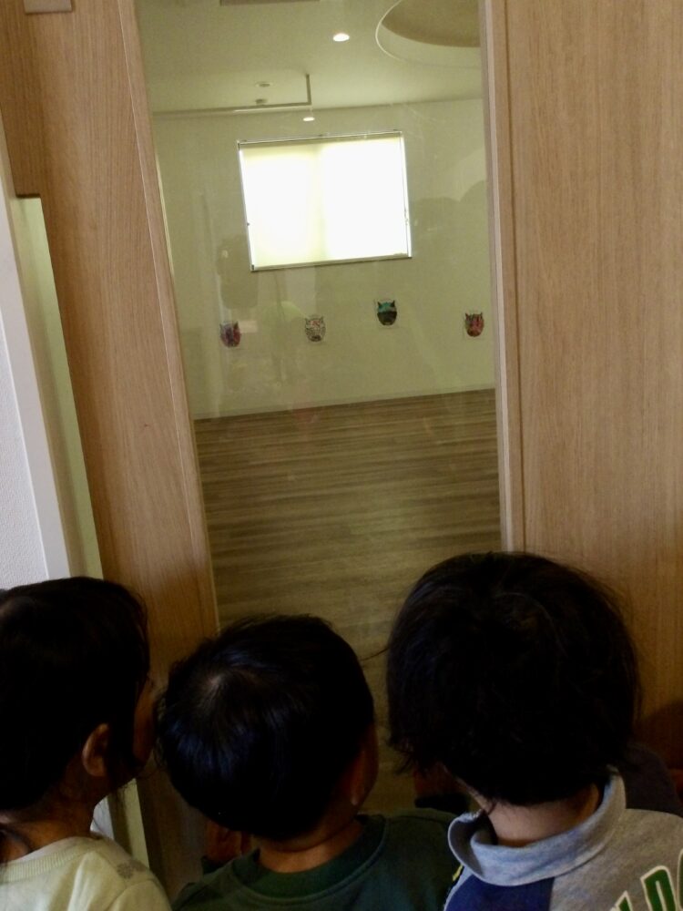 お部屋をおそるおそるのぞくと…鬼のお顔がありますね!