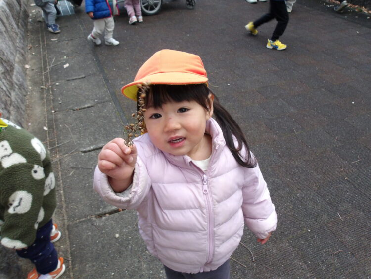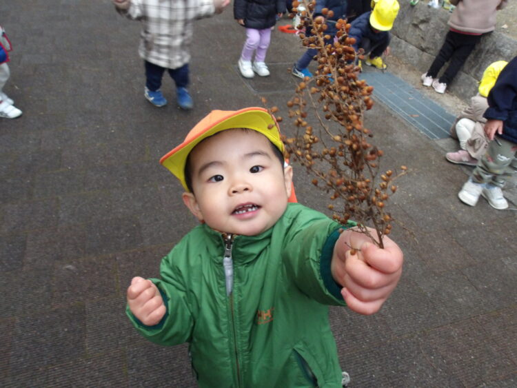 遊歩道では木の枝や葉っぱ、どんぐり集めを楽しんでいた子どもたちです!