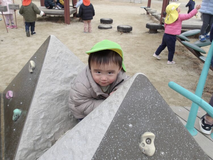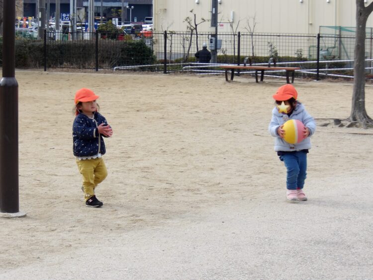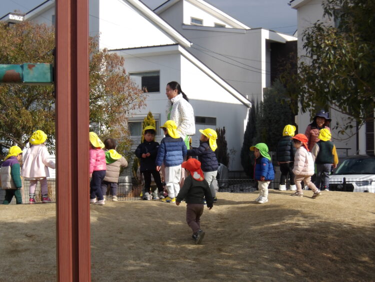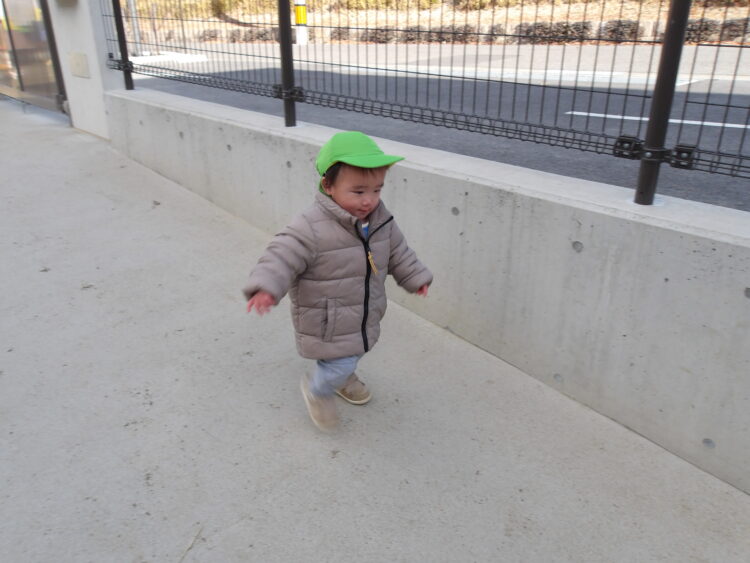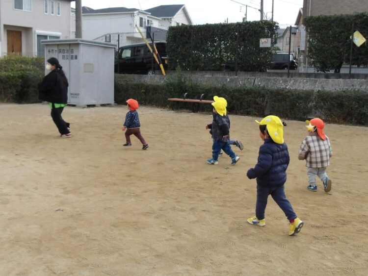 寒い日はたくさん走って暖まろう!ということで追いかけっこを楽しみました。「まてまてー!」と笑顔で追いかける子どもたち。元気にたくさん走りました!