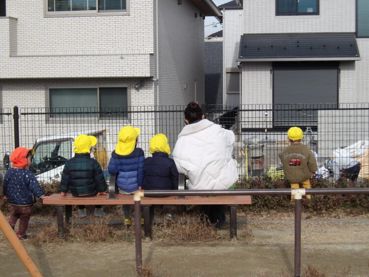 公園からはショベルカーが見え、「うごかないの?」「おやすみ?」