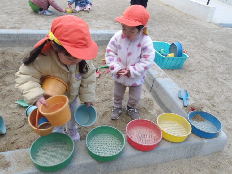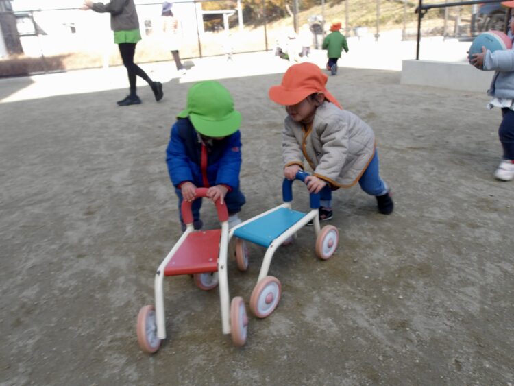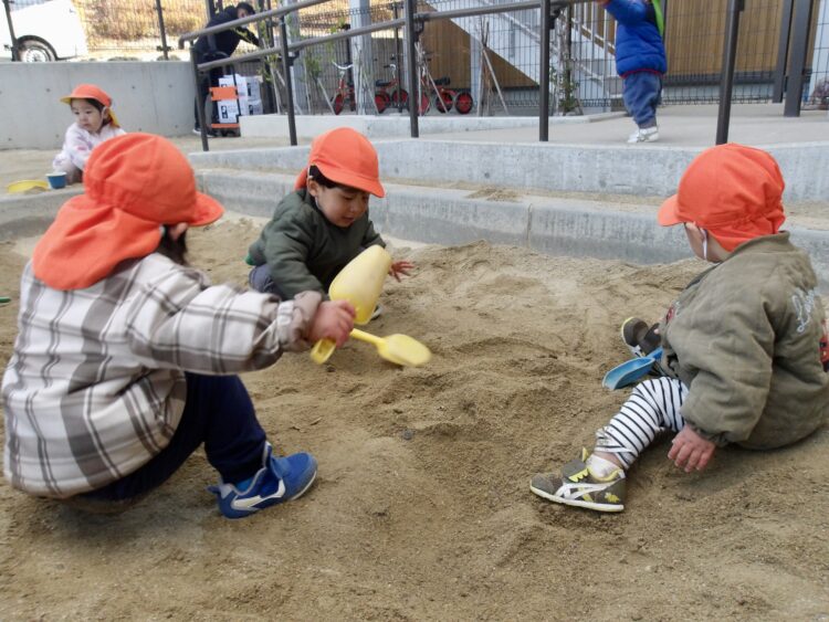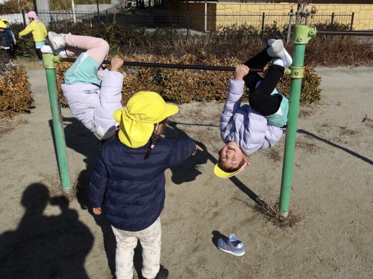 今日は園庭であそんだあひる、ひよこ組のお友だち。