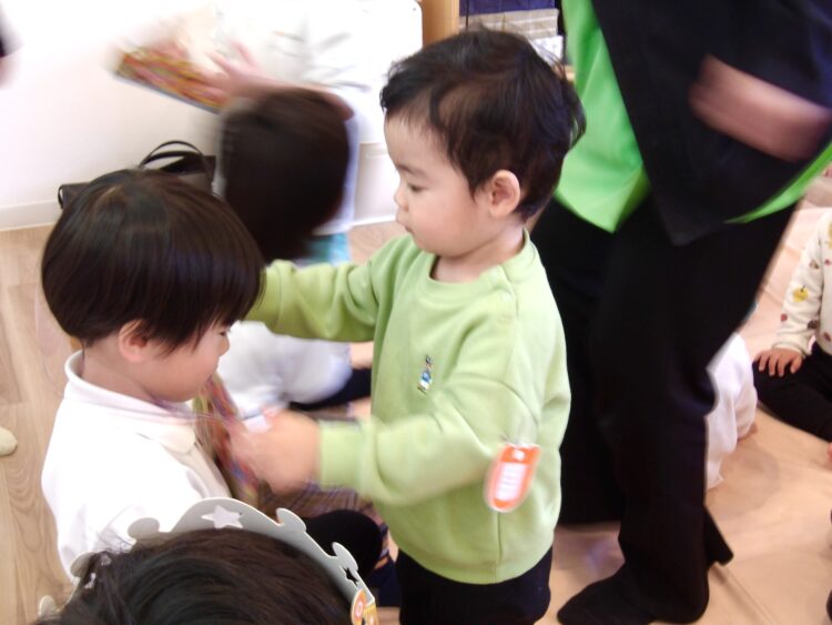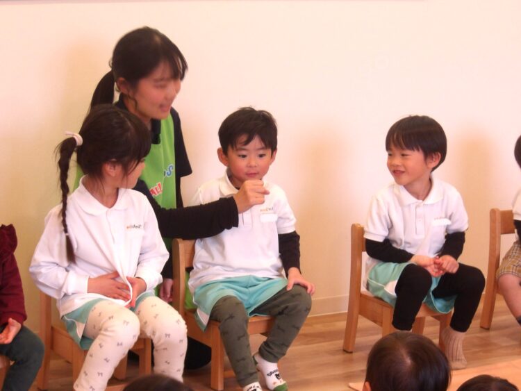 先生の話に集中して聞き入る子どもたちです。難しいルールやお約束も以前よりしっかり座って聞いて、理解できるようになってきました!