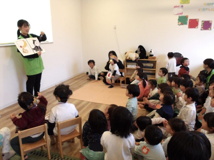 保育者からのプレゼントは『くいしんぼうおばけ』の歌とクイズ♩