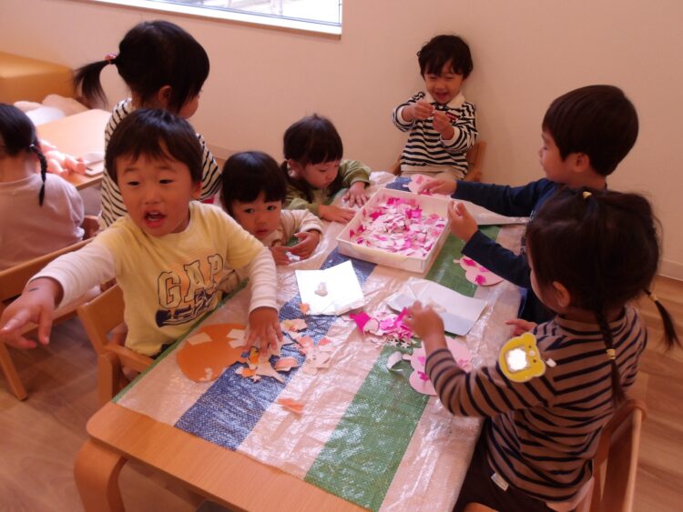 お部屋で過ごしました。お部屋での過ごし方も以前とは少し変わり、以前よりもコーナーに分かれて集中して遊びこむ姿や、コーナーでもお友だちと試行錯誤しながら新しい遊びを生み出す姿があります。