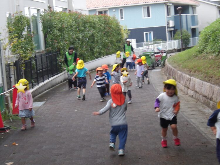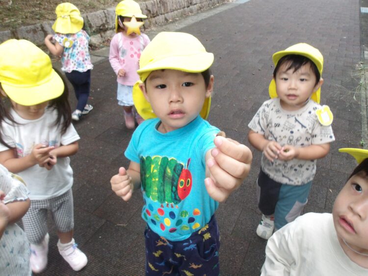 今日は遊歩道へどんぐり探しのお散歩に行きました。