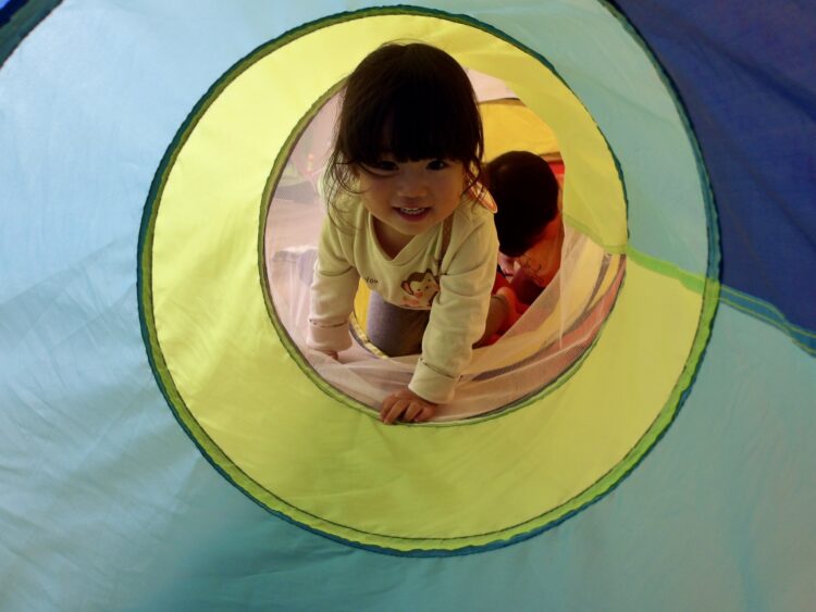 おままごとコーナーではお家づくりをおこなっていました!みんなで囲いを作って、お家ごっこが盛り上がっていましたよ。