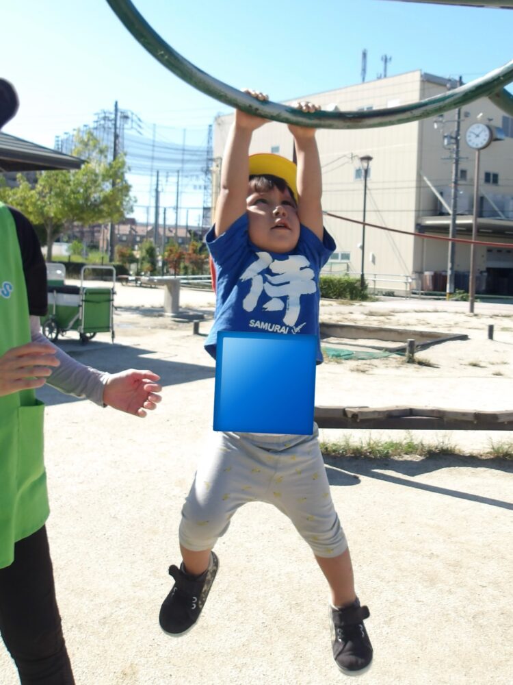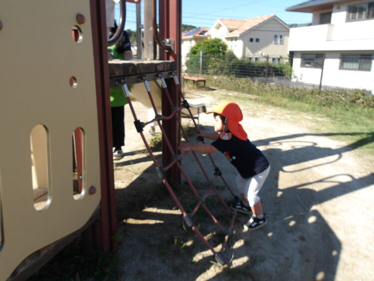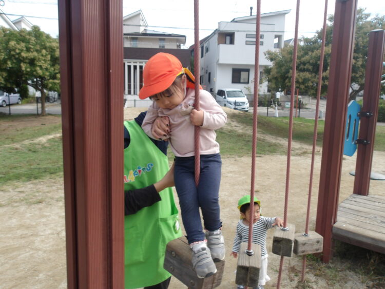 先生と一緒に難しい、アスレチック遊具に挑戦です!