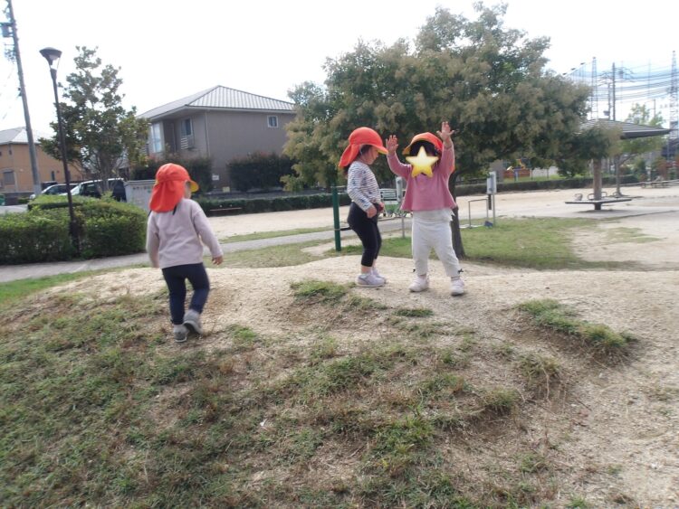 頂上から遊具で遊んでいるお友だちに手を振る姿も🤭