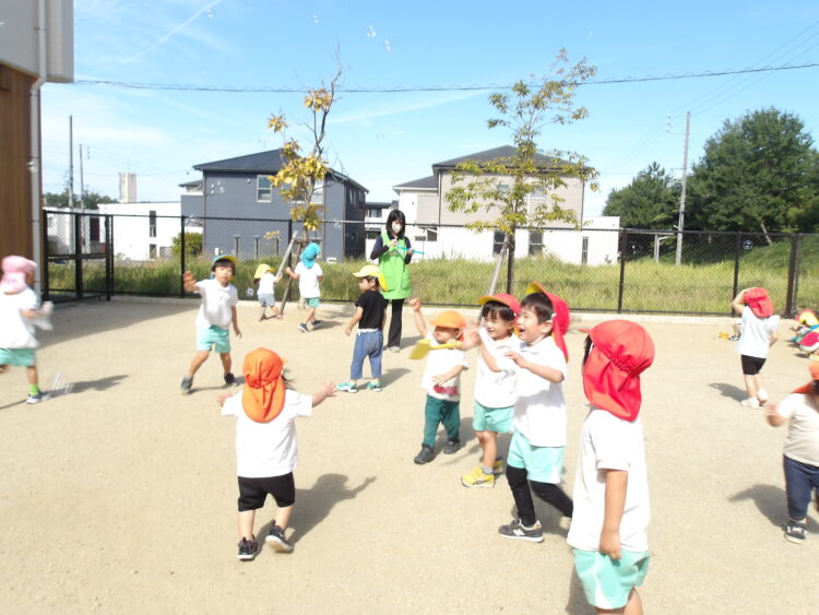 保育者がシャボン玉を持ってくると「はやく😳」と楽しみにしている様子でした!