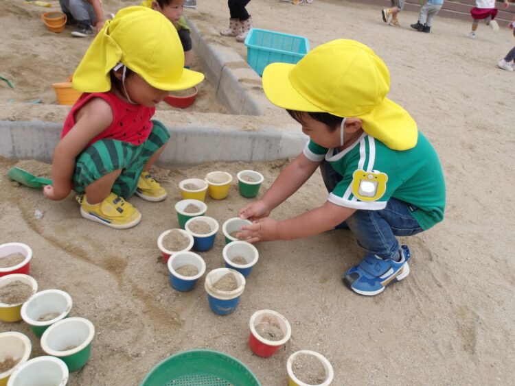 仲良くお話をしながらお砂で遊んでいる姿が!