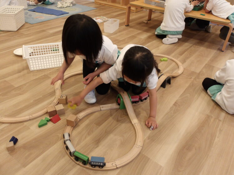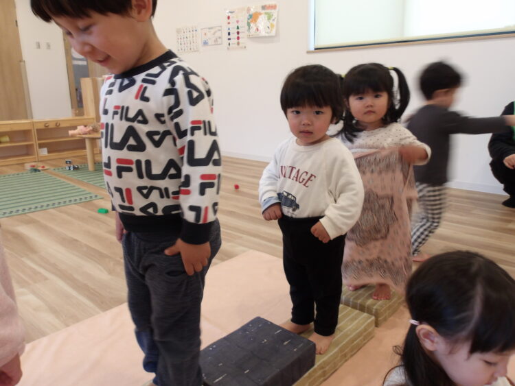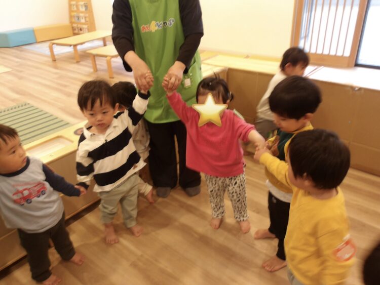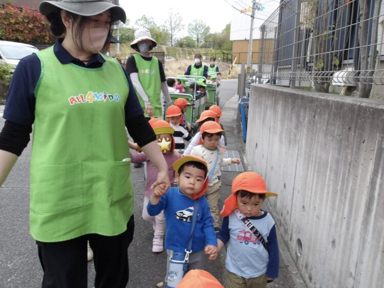 うさぎ組はお友だちと手を繋いでじょうずに歩くことができました。