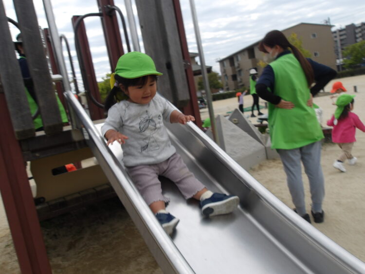 滑り台が楽しくて、何度も何度も遊具へ登って、滑っていましたよ。
