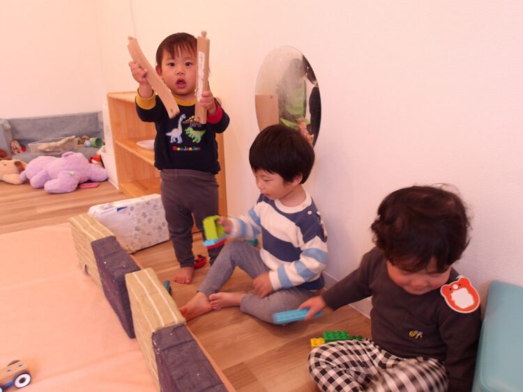 あひる組は遊具のこのスポンジの棒が気になる子が多かったです。