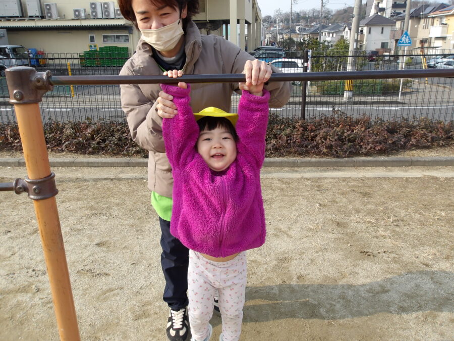 上手にぶら下がって遊んでいました!