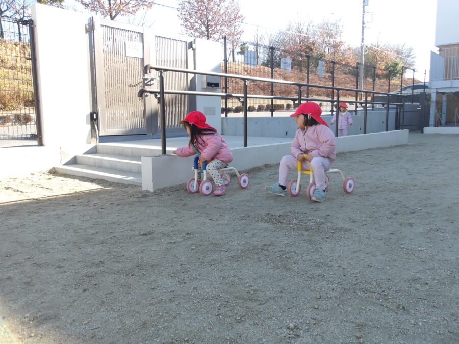 園庭を仲良くコンビカーでドライブして過ごす子も🤭