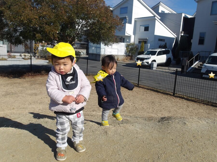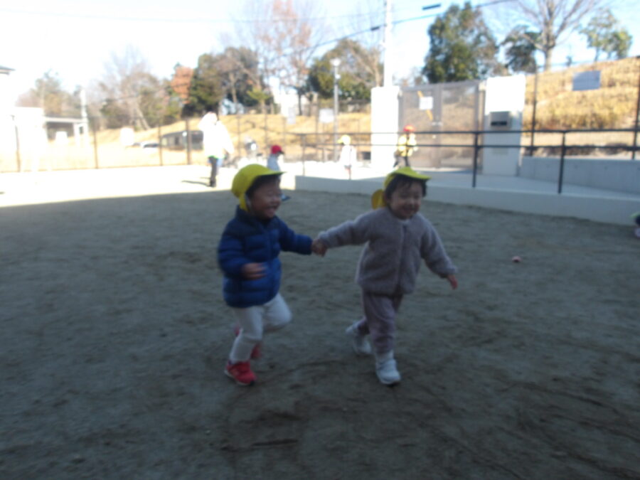 お友だちと手を繋いで楽しそうです🤭