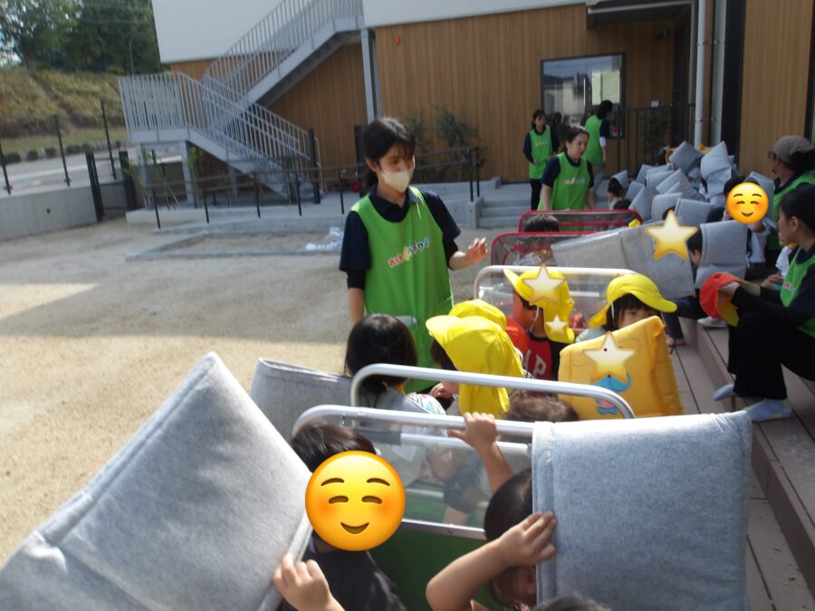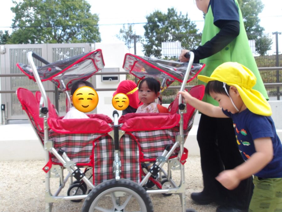 先生と一緒にお散歩カートを押してくれるお兄さんたち😄✨