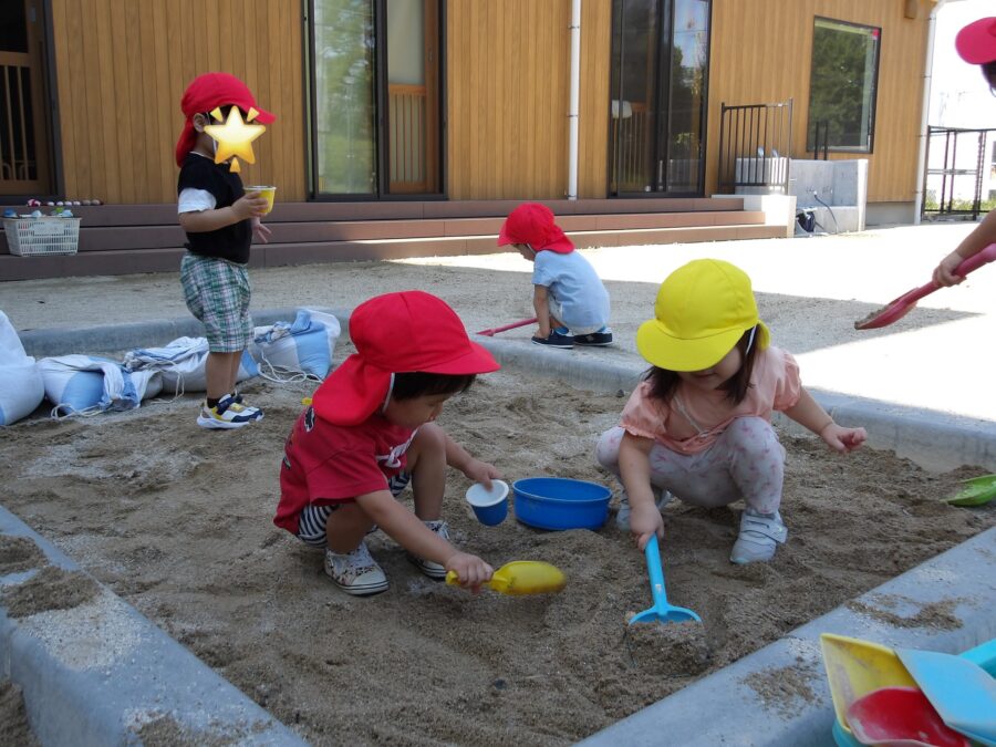 暑かったので短時間ですが、園庭で遊びました☀️