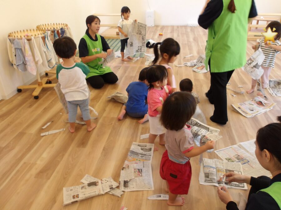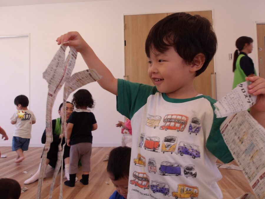 ビリビリと破ったり、くしゃくしゃっと丸めたり感触を楽しむ子どもたちでした📰