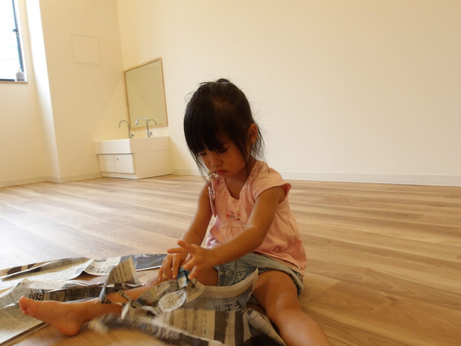 新聞紙のプールでは、新聞紙を細かくちぎったり、