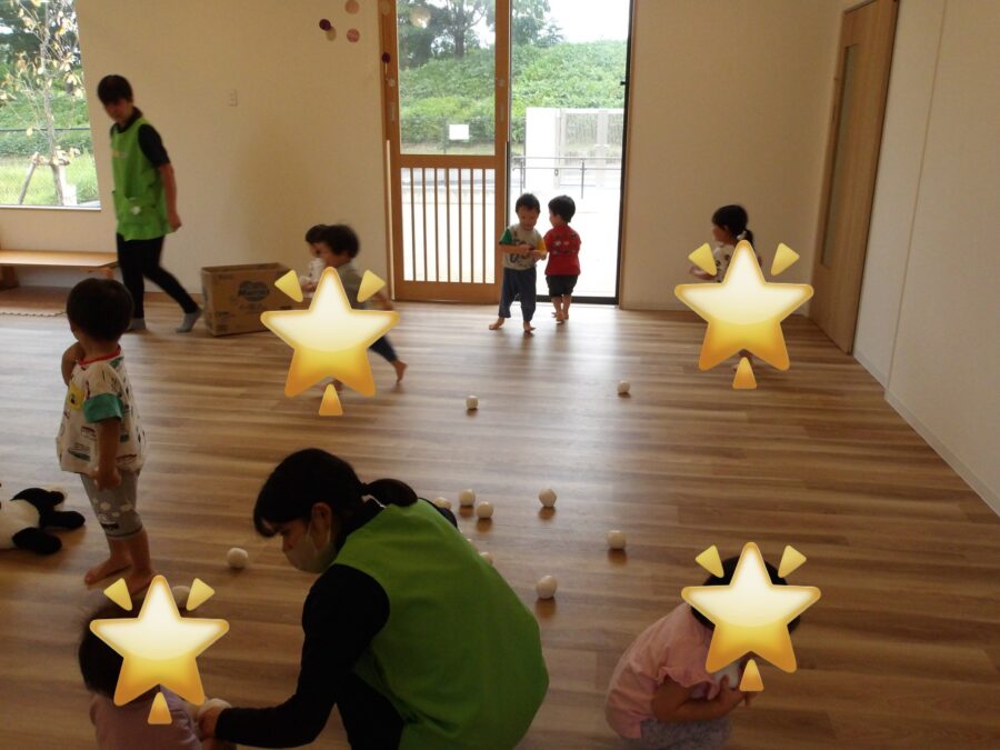 ボールのお部屋では動物の積木を積んで遊んだり、風船を投げてふわふわと落ちてくる様子を楽しむ姿も見られました🎈