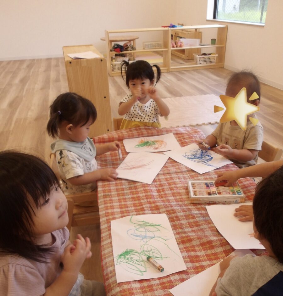お絵描きのお部屋では、好きな色のクレヨンを自分で選び思い思いにお絵描きをする姿が見られましたよ🖍️