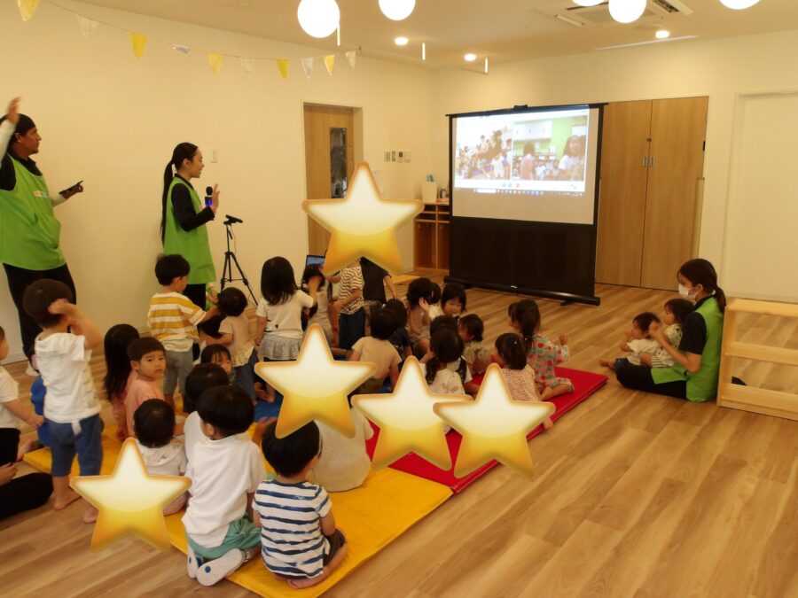 みんなスクリーンにうつるお友だちに興味津々でした。