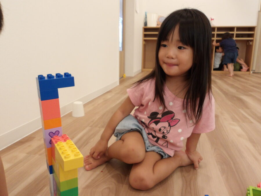 今日は、English Timeを楽しんだり、画用紙に線路を描いて働く車を走らせて遊んだり、トンネルをくぐったりして元気に遊んでいました。