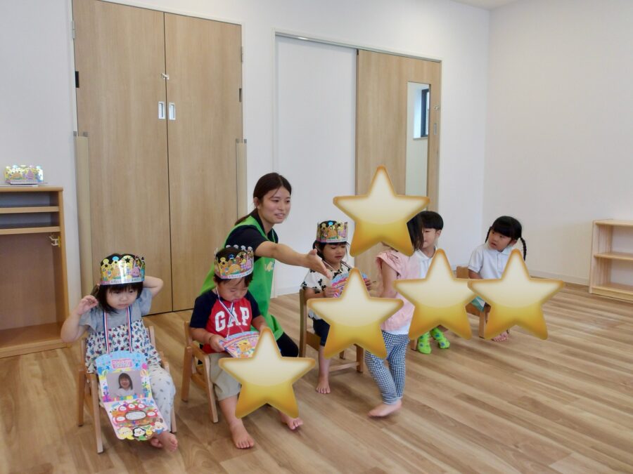 誕生児の紹介をした後、お友だちにカードをかけてもらい大満足でした⭐️
