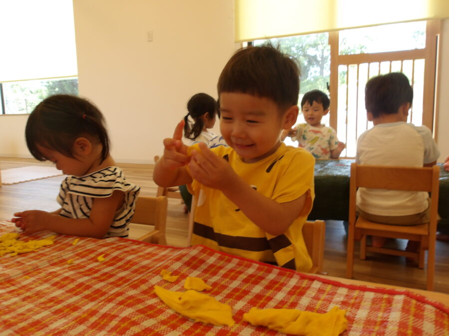 先生にも「はいどーぞ!」とちぎった粘土をたくさん渡してくれる子もいましたよ![]()