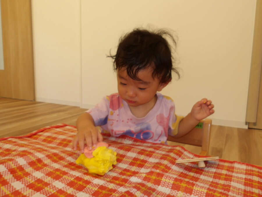 指先でギュッギュと丸めて見たりとおもいおもいに楽しんでいました♪