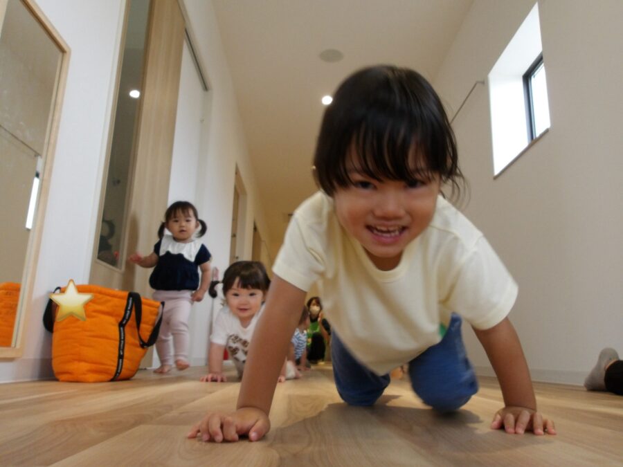 先生の「よーいどん!」の合図でハイハイレースの開始✨