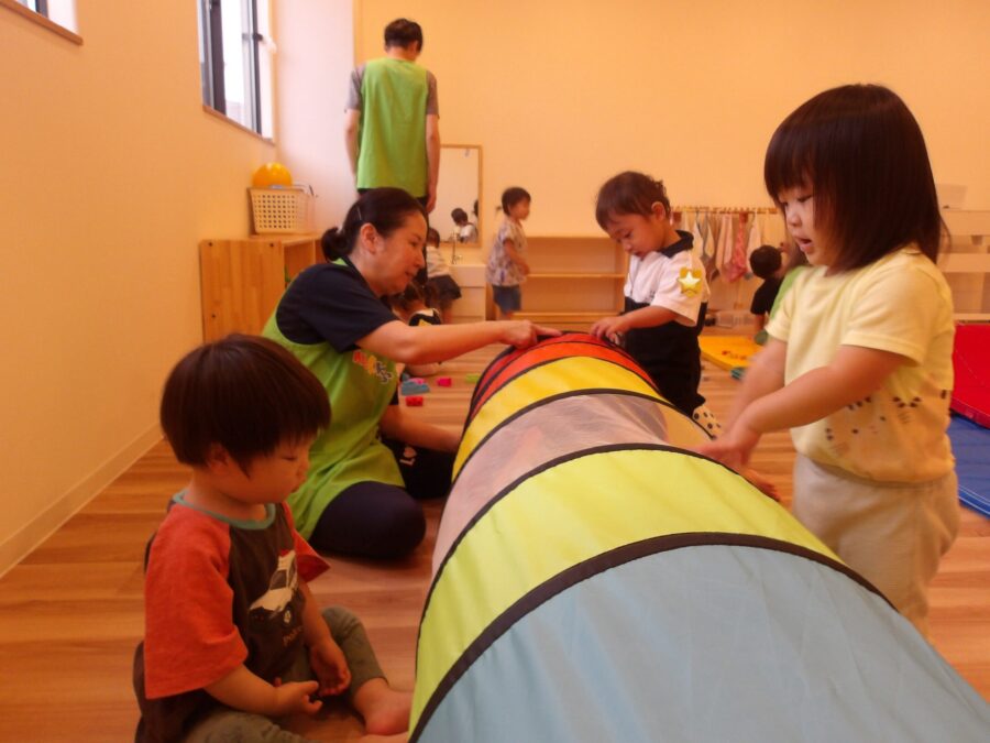 トンネルの外からは「おーい!」とお友だちを呼ぶ姿が見られました😊