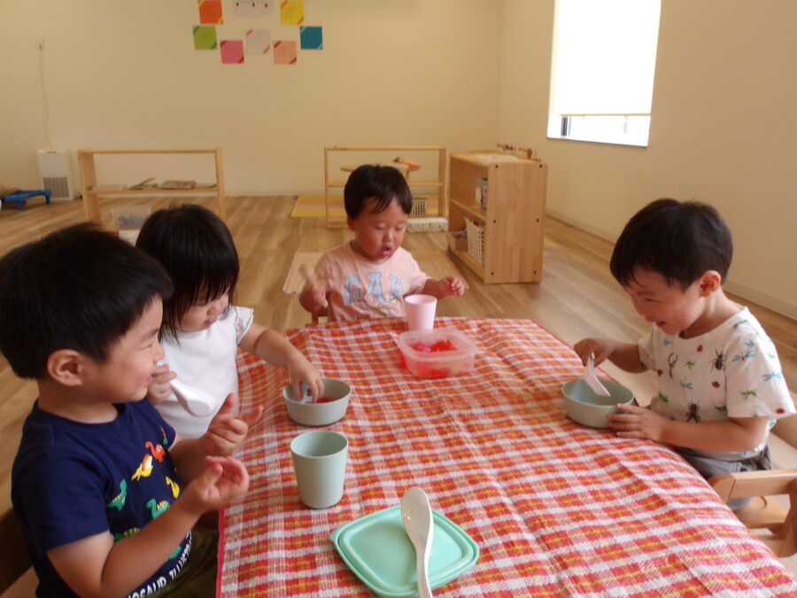 その後はお部屋で遊んだり、寒天の感触遊びを楽しんだりしました![]()