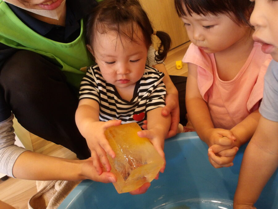 子どもたちは、氷遊びと的当てを楽しみました。