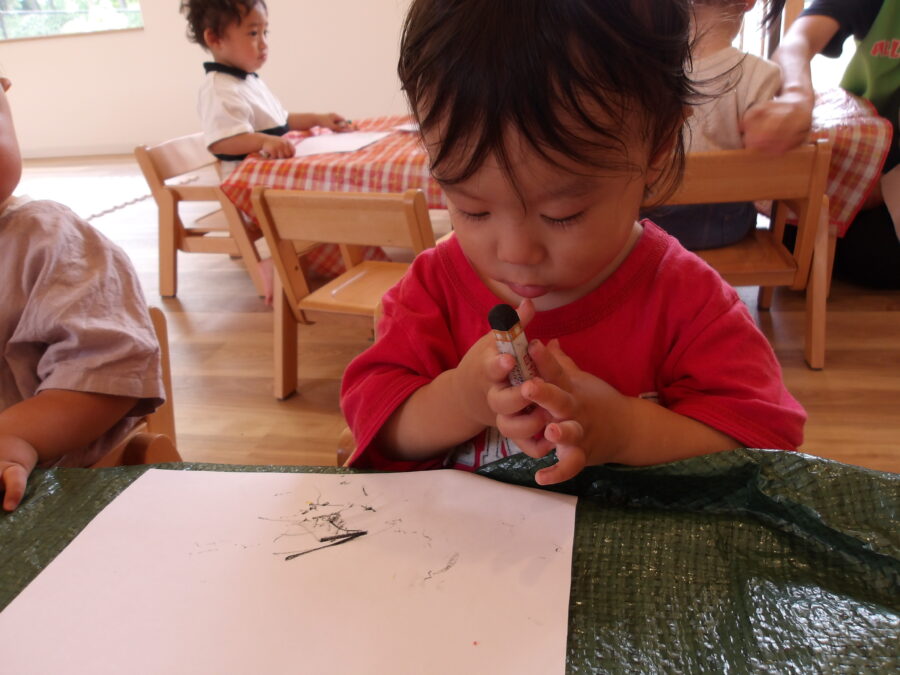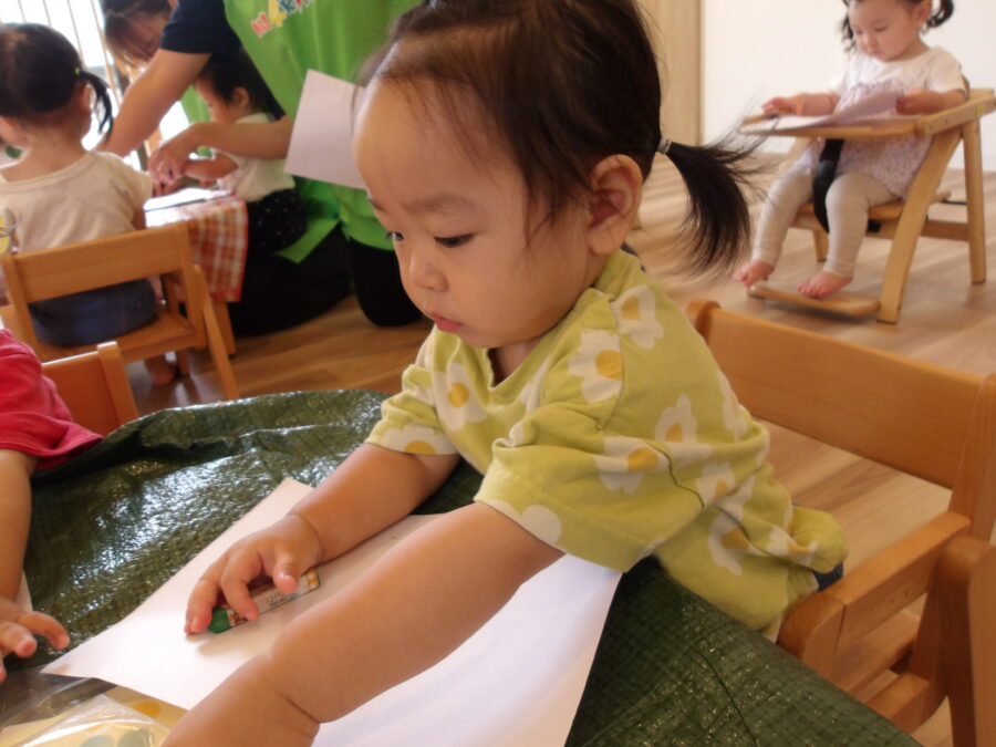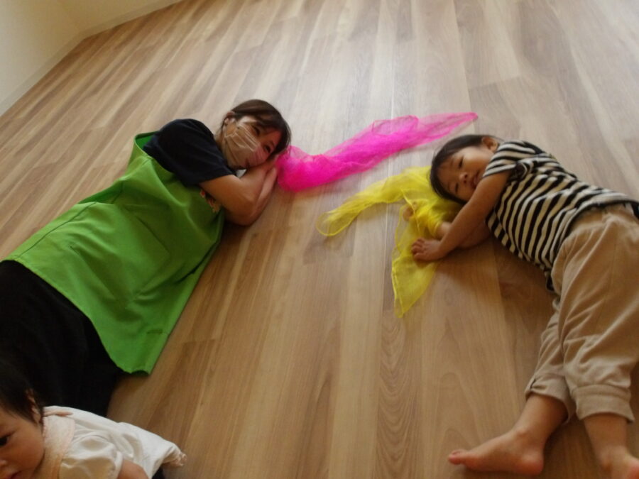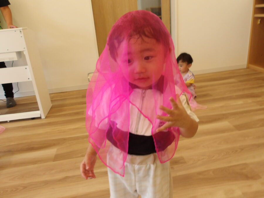 今日は、お部屋でお絵描きしたり、シフォンのスカーフでリトミックをしました。
