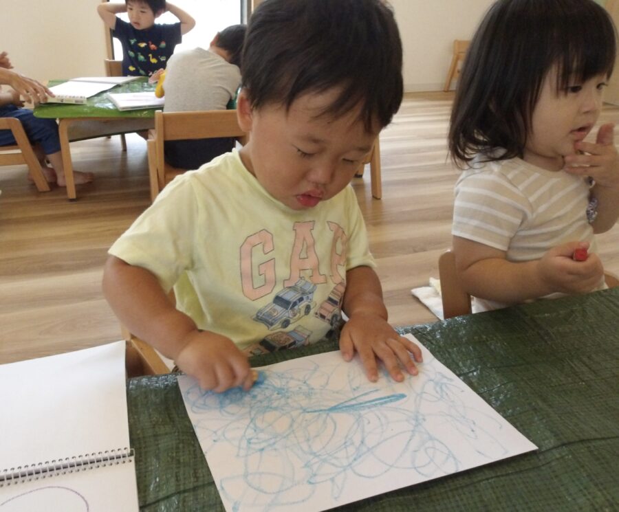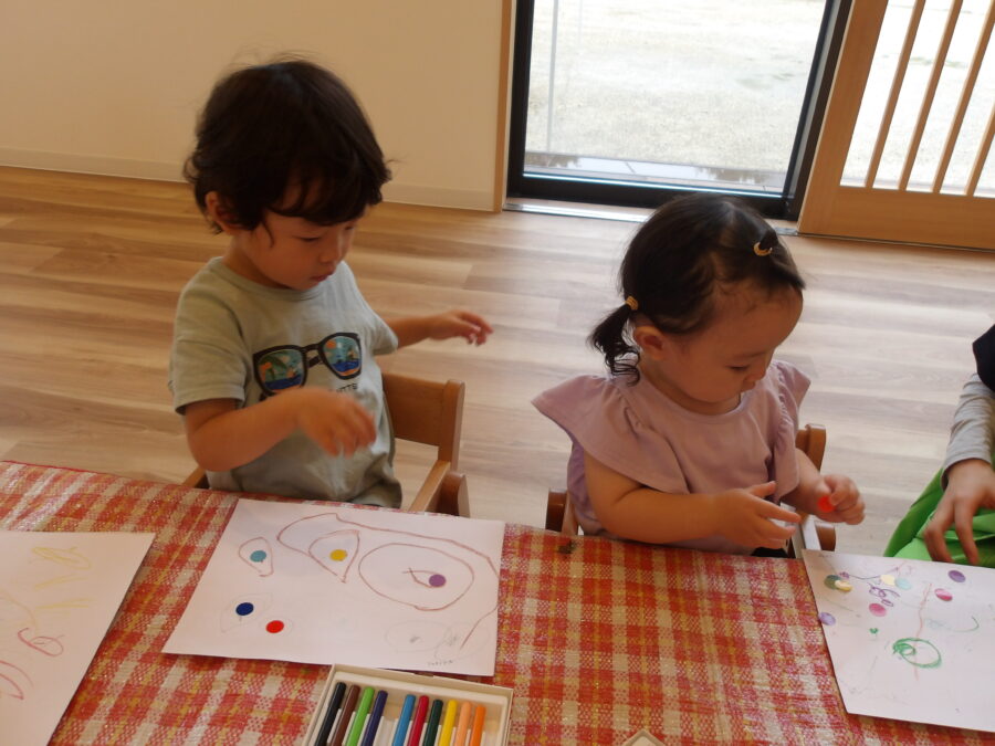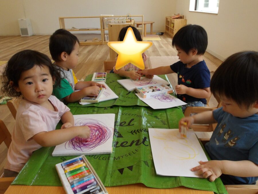 好きな色のクレヨンを手に取りお絵描きを楽しむ子どもたち🖍️