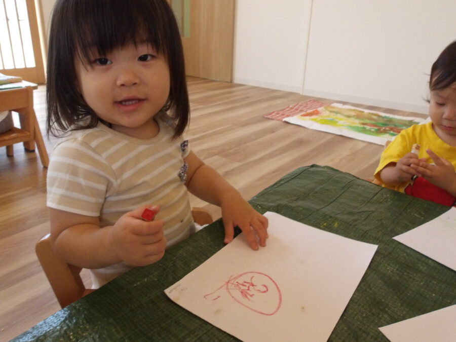 何を書いたのか聞いて見ると「まま!」「アンパンマン!」等教えてくれましたよ♪