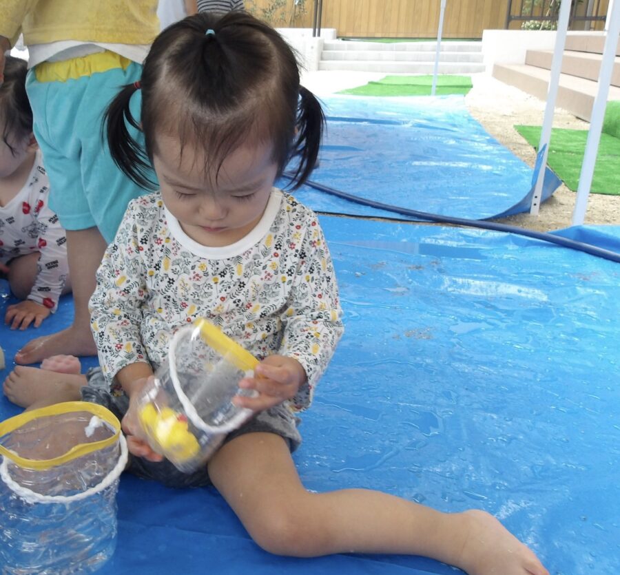 あひるのおもちゃが大人気でした🤭ペットボトルに集めて、嬉しそうに保育士に見せてくれる姿も見られましたよ✨