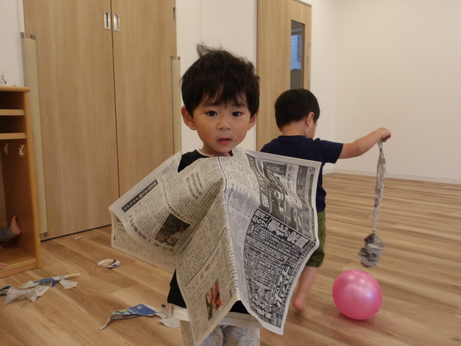 新聞紙遊びでは、ビリビリと破ったり、丸めたりして感触を楽しみました😌