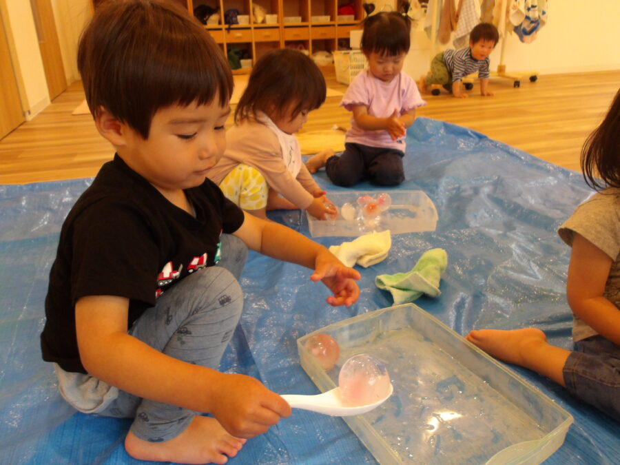 触ってみると「冷たい!」など伝えてくれる子も😌