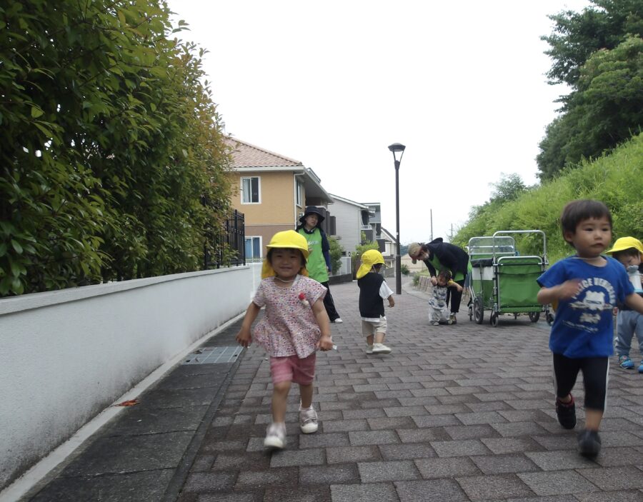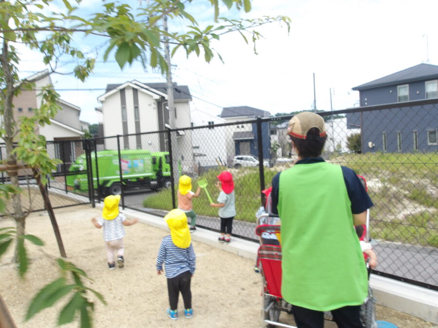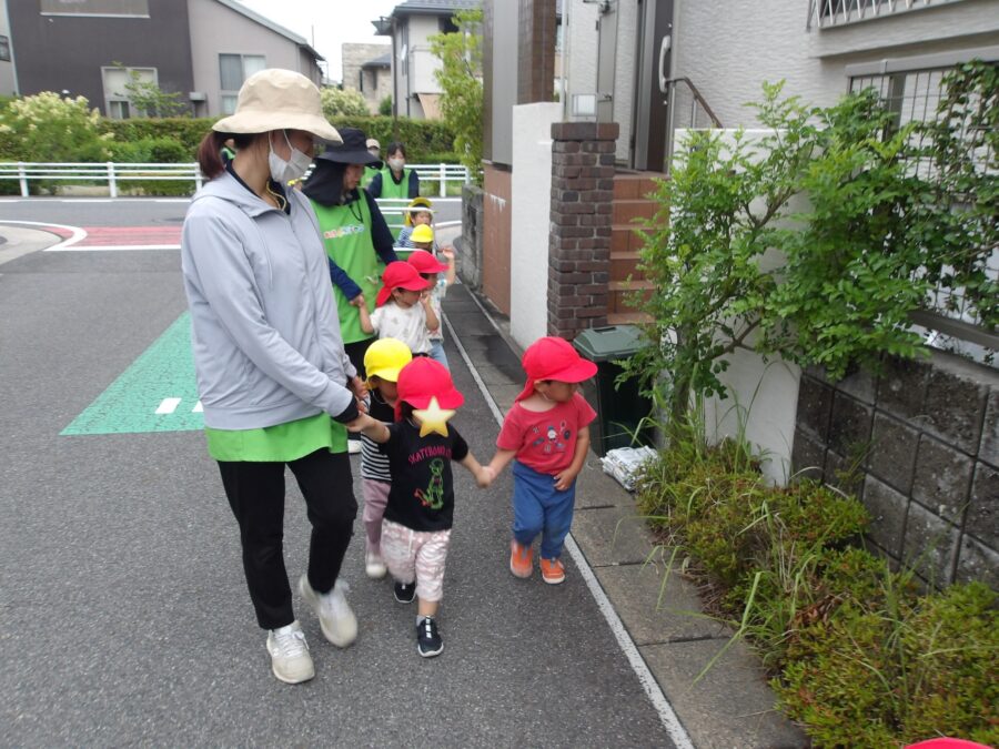 園庭に出た後みんなで避難場所の市が洞二丁目に行きました!