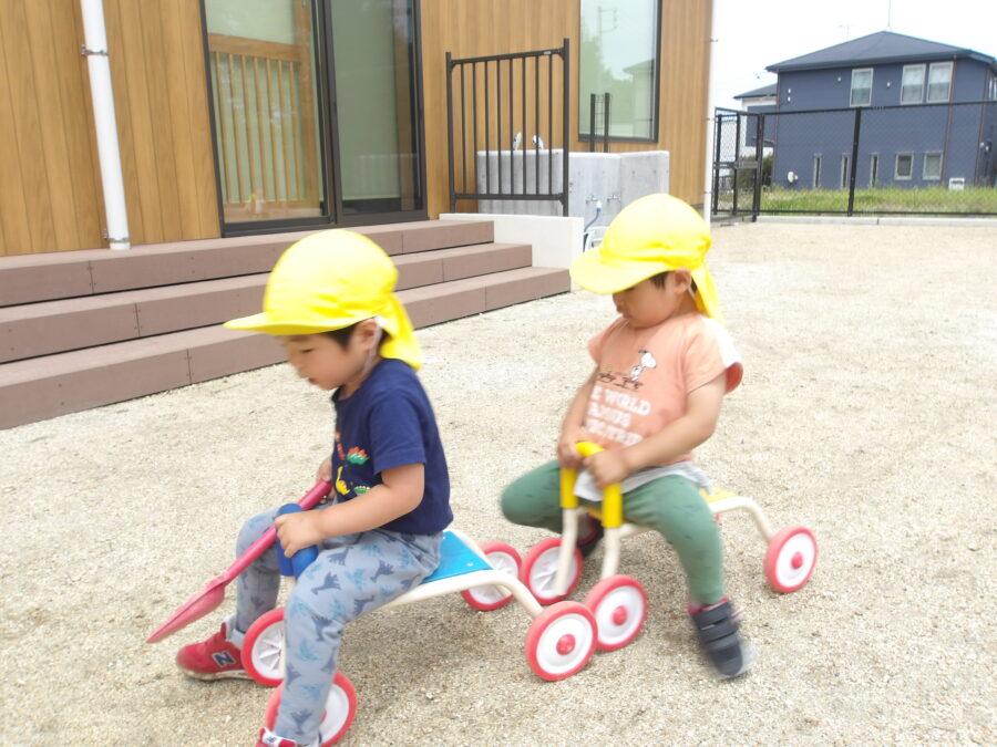 避難訓練の後は、園庭とお部屋にわかれて過ごしました😊