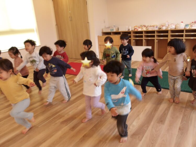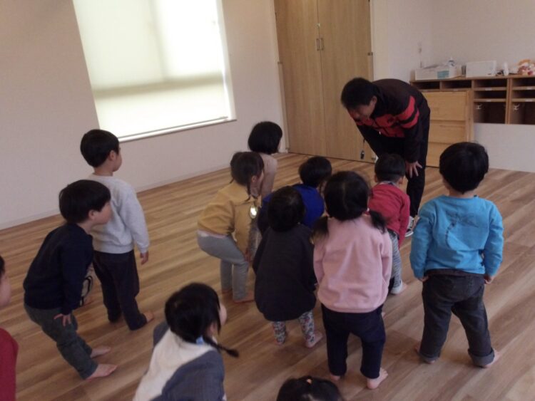 「みんながパパとママなの?!」と言いながらもお兄さんたちに見守られて嬉しそうなそら組さんです。