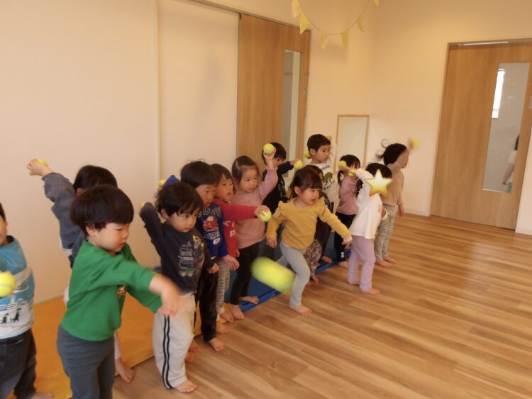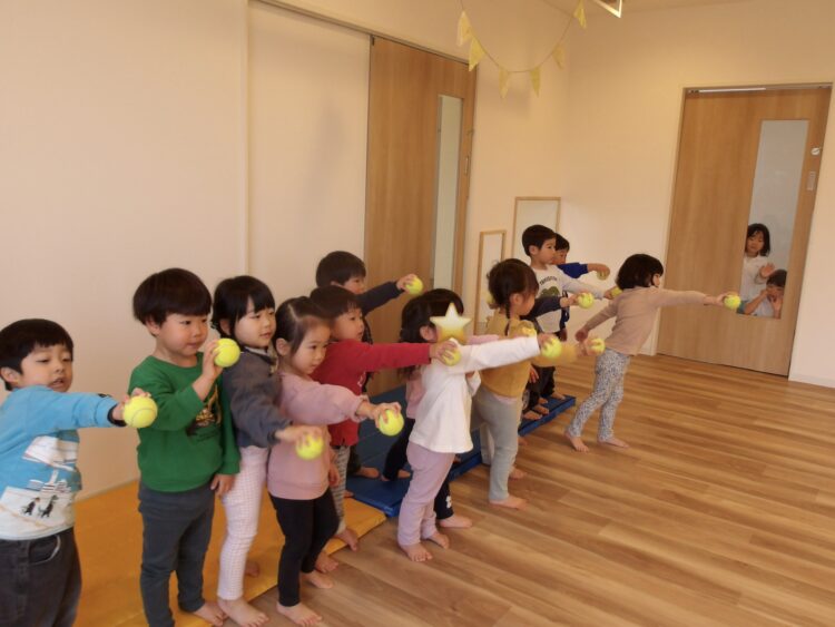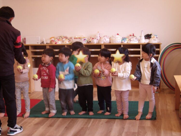 恥ずかしくて声が小さくなってしまいますが、「パパとママに聞こえるようにね!」と促すと、「○○です!」ととても大きな声で発表してくれる姿も見られました。