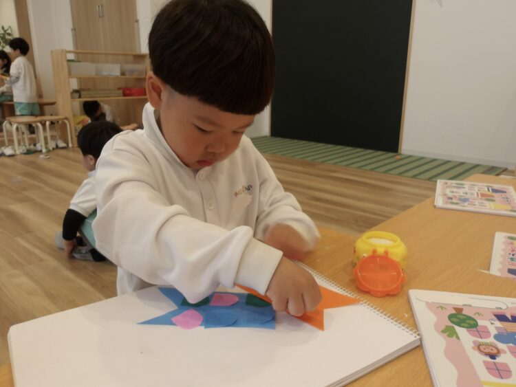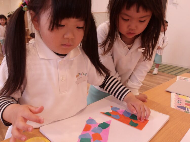 はさみで切ったり、のりでは貼り付けたりして楽しそうに活動していました!