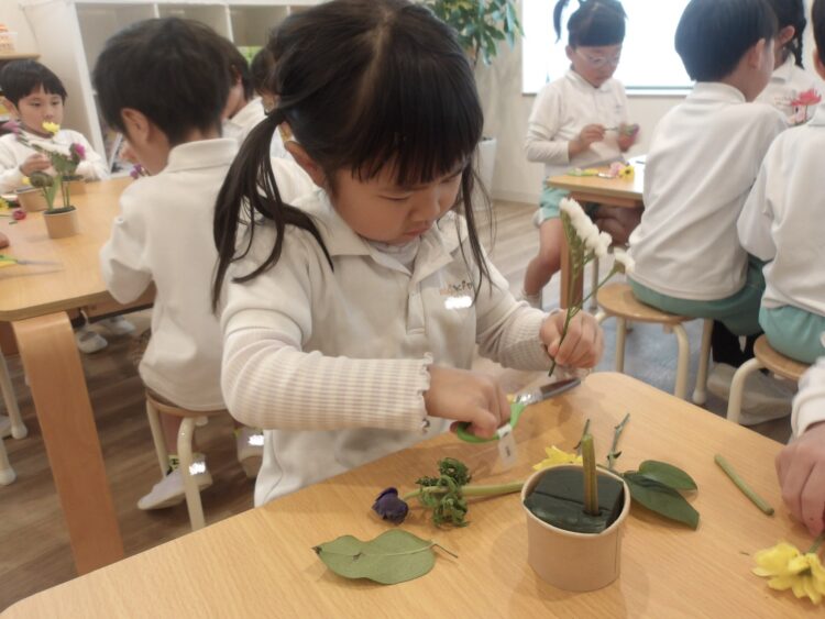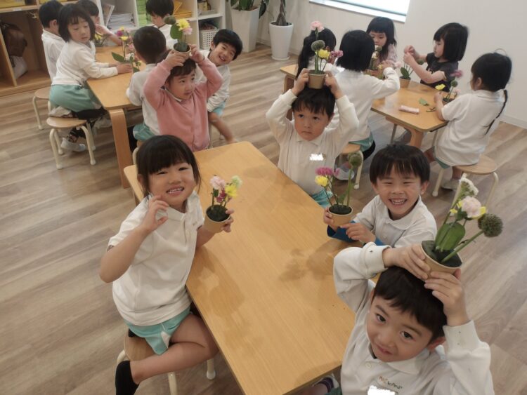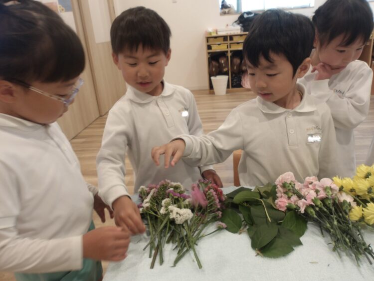 今日は、にじ組たいよう組のフラワーアートがありました。