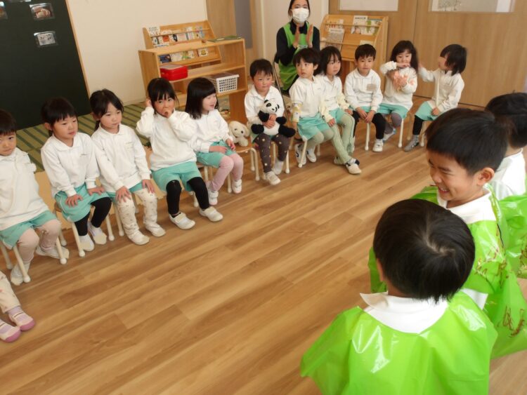 お客さんになってくれたにじ・たいよう組から「楽しかった」「面白かった」と感想をもらい、嬉しそうなそら組でしたよ。