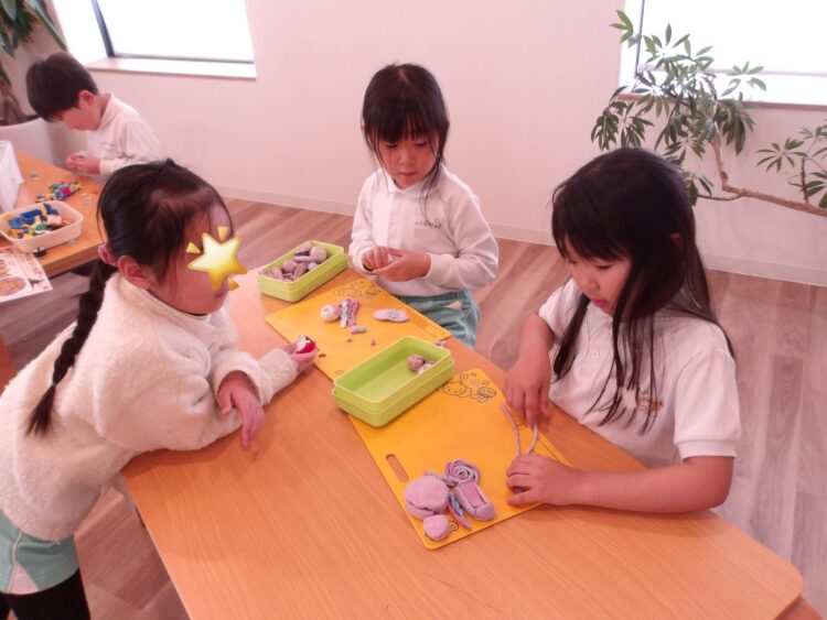 にじ・たいよう組は手先を器用に使い、粘土でミニチュアを作ったり、